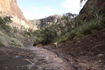 From the carpark, follow the short walking track to waterholes. Climb the small hill on the left of the waterholes and follow the rocky creek bed that leads to Waa Gorge.